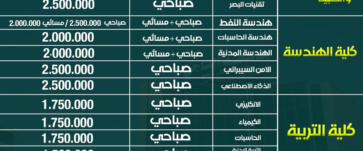 جامعة الناجي تعلن عن افتتاح الدراسة المسائية لاقسام جديدة