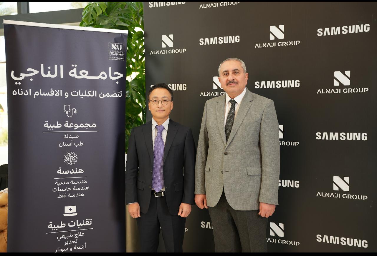 أعلن رئيس جامعة الناجي، الأستاذ الدكتور منير حميد السعدي، عن توقيع جامعة الناجي اتفاقية تعاون مشترك مع شركة سامسونج الكورية (SAMSUNG).