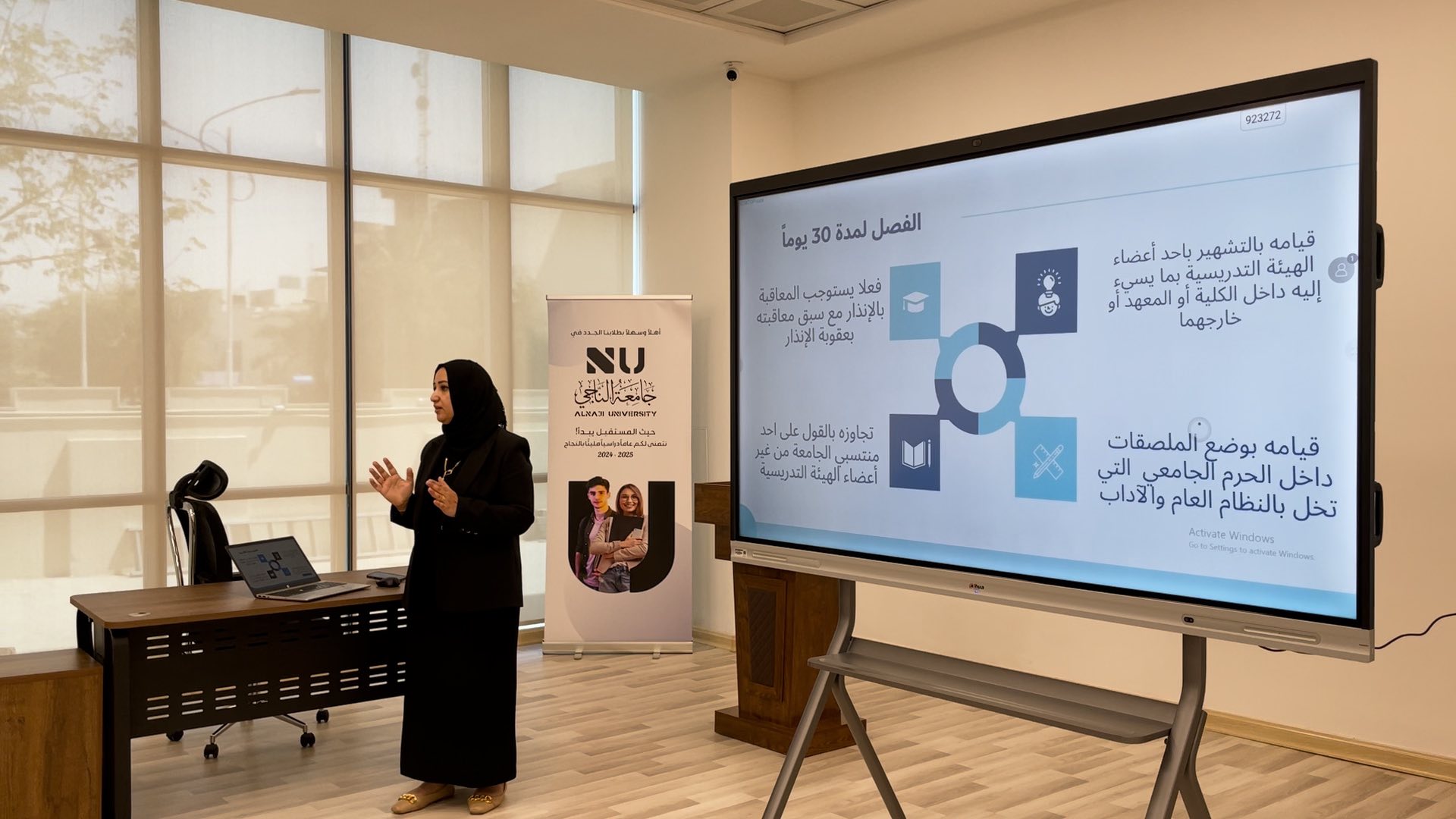 تطرقت الندوة إلى شرح مفصل حول التعليمات والقوانين المتعلقة بانضباط الطلبة، بالإضافة إلى العقوبات المترتبة على المخالفات السلوكية والأكاديمية، مؤكدة أهمية التزام الطلبة بهذه التعليمات لتفادي الوقوع في المخالفات القانونية.