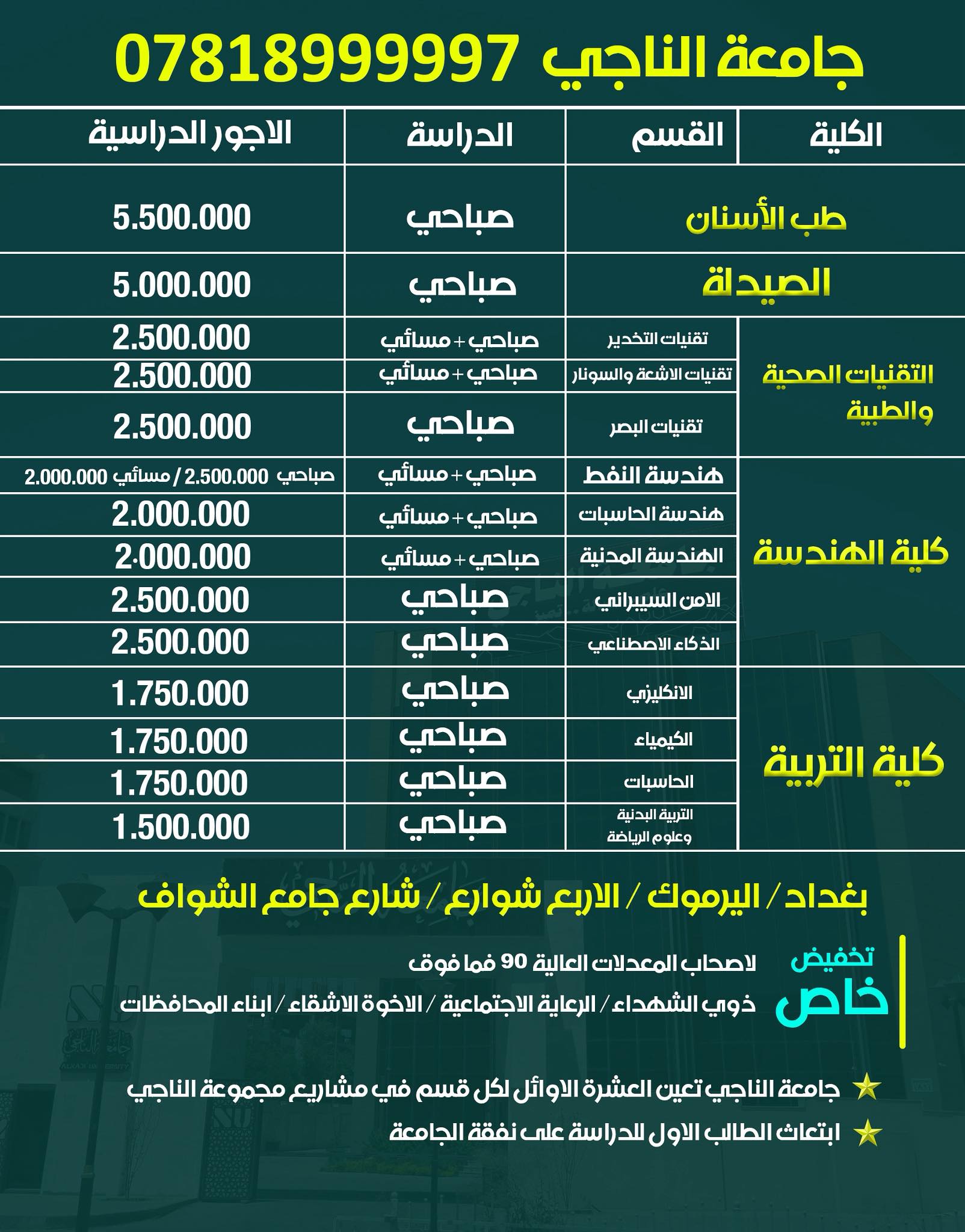 جامعة الناجي تعلن عن افتتاح الدراسة المسائية لهذا العام في التخصصات التالية: