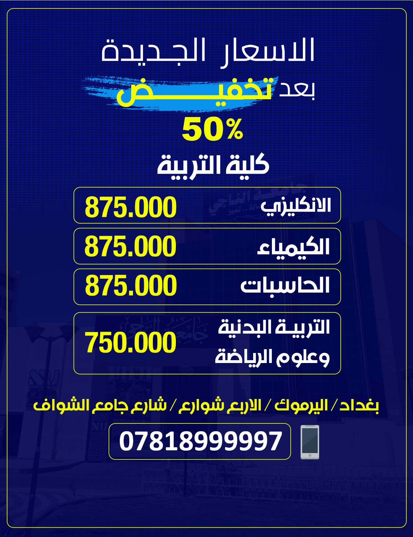 والانضمام الى قناة طلبة جامعة الناجي في نهاية الاستمارة علما ان القبول النهائي على معدل الطالب وأسبقية التسجيل وحسب تعليمات وزارة التعليم العالي والبحث العلمي التي سوف يتم اعلانها في دليل القبول