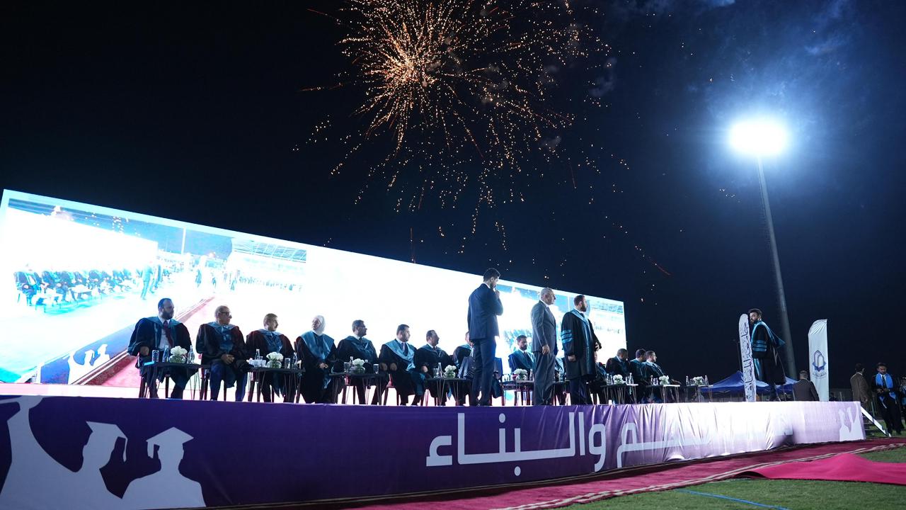 حضر السيد رئيس جامعة الناجي الاستاذ الدكتور منير حميد السعدي المحترم والوفد المرافق له وبدعوة من السيد رئيس جامعة المعارف الاستاذ المساعد الدكتور محمود عبد الرزاق السعدي المحترم حفل تخرج الدورة ٢٩ لجامعة المعارف والذي جرى على ملعب الصوفية في محافظة الانبار العزيزة بحضور السيد رئيس هيئة البحث العلمي الاستاذ الدكتور شفيق المولى المحترم ممثلا عن معالي السيد وزير التعليم العالي والبحث العلمي والسيد مدير دائرة التعليم الاهلي الاستاذ الدكتور فارس اللامي المحترم.