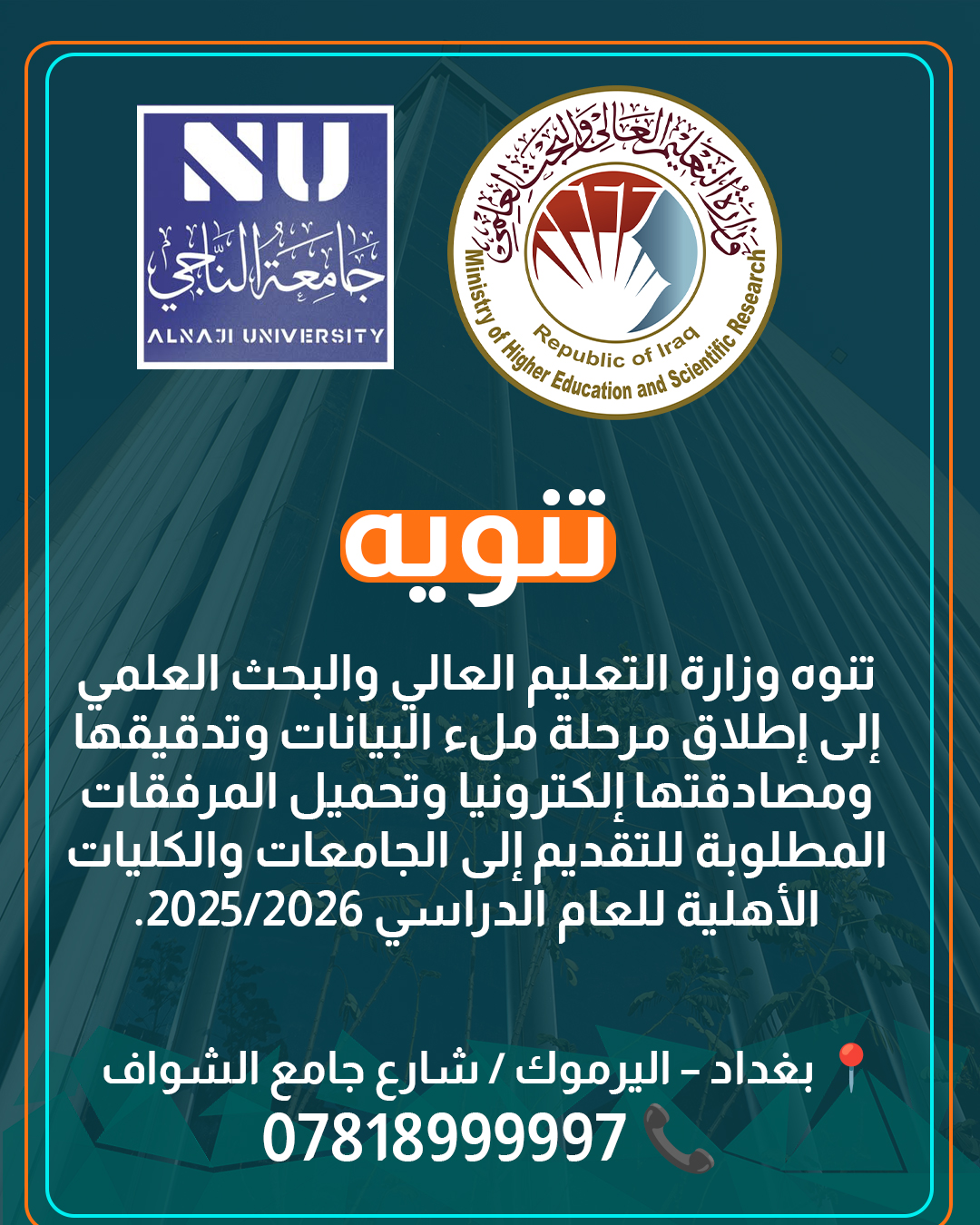 جامعة الناجي الأهلية – معترف بها رسميًا من وزارة التعليم العالي.