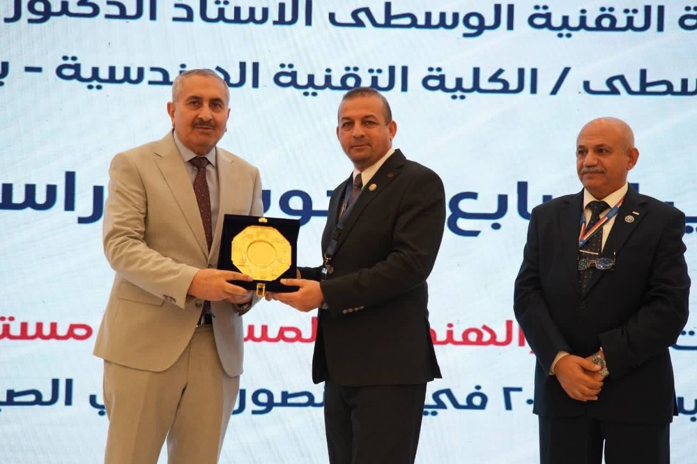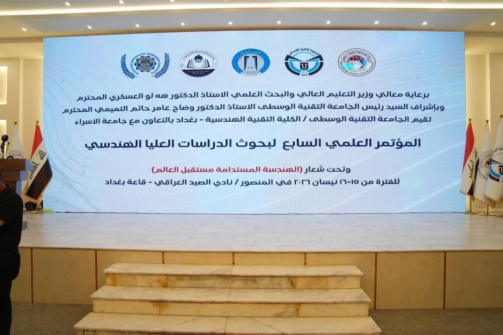 تأكيداً على عمق الروابط الأكاديمية والعلاقات البحثية الاستراتيجية التي تجمع جامعتنا بالمؤسسات التعليمية الرائدة، شارك السيد رئيس جامعة الناجي في فعاليات “المؤتمر العلمي الهندسي السابع لبحوث الدراسات العليا” للعام الدراسي 2025–2026. وقد نُظم هذا الحدث البارز من قبل الكلية التقنية الهندسية بغداد في الجامعة التقنية الوسطى، يوم الأربعاء الموافق ١٥ نيسان ٢٠٢٦، وتُوّج بتكريم رفيع لرئاسة جامعتنا في ختام أعماله. علاقات بحثية متينة لدعم الاقتصاد المعرفي.