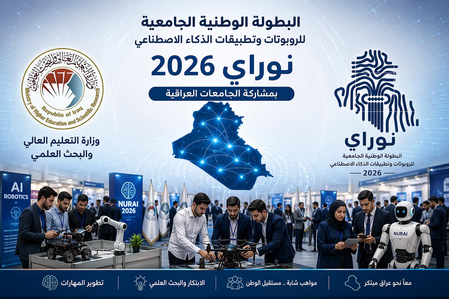 أنتم اليوم تمثلون طاقات العراق الواعدة، وتحملون أفكاراً قادرة على صناعة الفرق وبناء مستقبل أكثر تطوراً وابتكاراً. إن مشاركتكم في هذه البطولة ليست مجرد منافسة، بل خطوة مهمة نحو اكتساب الخبرة، وتعزيز روح العمل الجماعي، وتحويل المعرفة إلى حلول واقعية تخدم المجتمع.